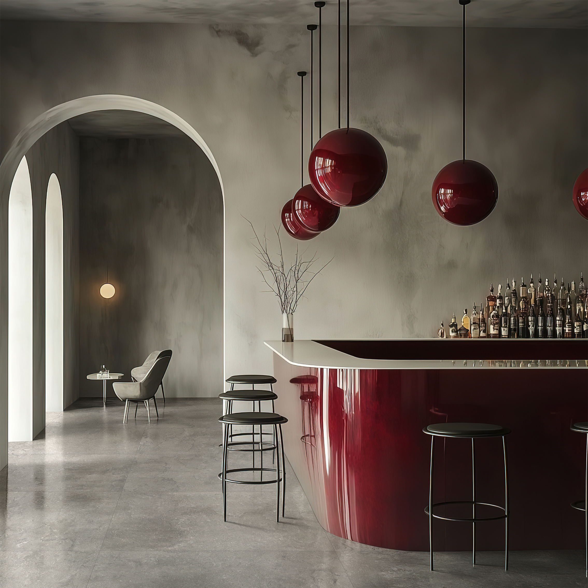一片來自未來的古老冰原。復(fù)刻地殼的史詩斷層,煅燒的肌理如微縮的山巒。鋪陳于玄關(guān)或廳堂,冷冽的理性氣場下,暗涌著宇宙星辰的深邃哲思,線性燈光是探索未知的航標(biāo)。
