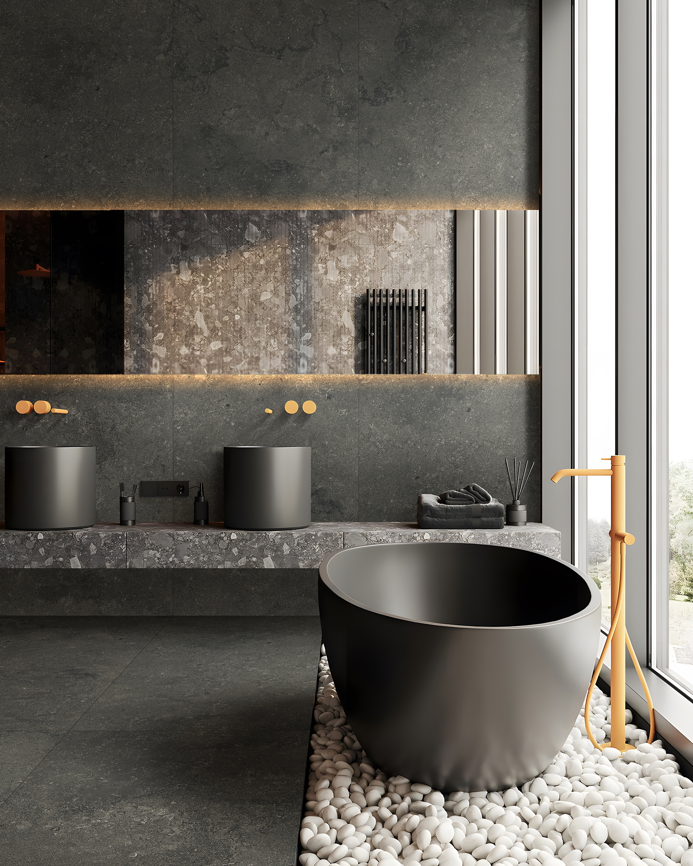 一片濃縮了洪荒之力的暗夜畫布。完美再現(xiàn)了柱狀節(jié)理的壯美與力量。鋪陳于高端會所或現(xiàn)代立面,它不僅是材料,更是一種宣言——在深邃的暗調(diào)美學中,蘊藏著大地最原始、最震撼的磅礴詩行。